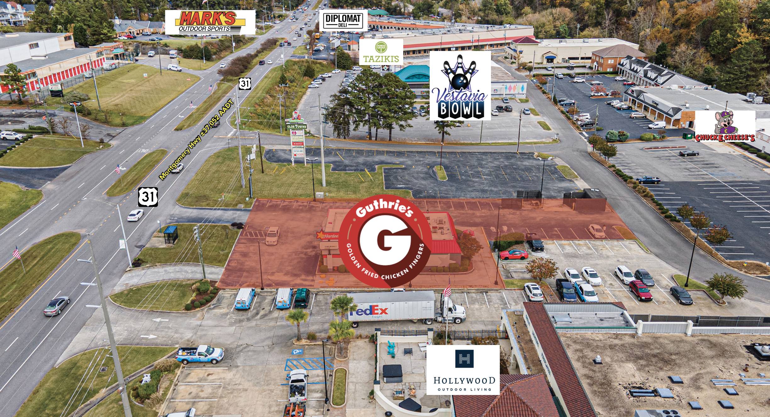 Harbert Retail’s Casey Howard and Lacey Scott represented both the buyer and seller in a $1.3M sale of a ±3,400 SF free-standing former Hardee’s located at 1437 Montgomery Highway (Hwy 31) in Vestavia Hills, Alabama, a high growth suburb of Birmingham. The seller was GBL investments, LLC, and the buyer was Guthrie’s Chicken. Guthrie’s will be opening a new location at the site. The site is ideally situated in a high-traffic/high-visibility location along Highway 31 in one of Vestavia Hills’ most active retail corridors, boasting a traffic count of over 37,000 cars per day. Nearby retailers include Publix, Dunkin’, Circle K, Taziki’s, Chipotle, Bruster’s Ice Cream, Arby’s, and others.