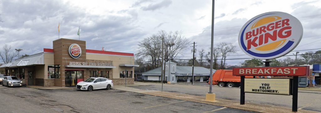 Harbert Retail’s Casey Howard and Lacey Scott represented the seller in the sale transaction of a former Burger King location in the Montgomery, Alabama. The property was sold by the Chang Family Trust and Wang Family Trust to TDMT, LLC, for $1,165,000. The property is ±2,689 SF and is ideally located at 1621 Carter Hill Road near Alabama State University in Montgomery, Alabama.