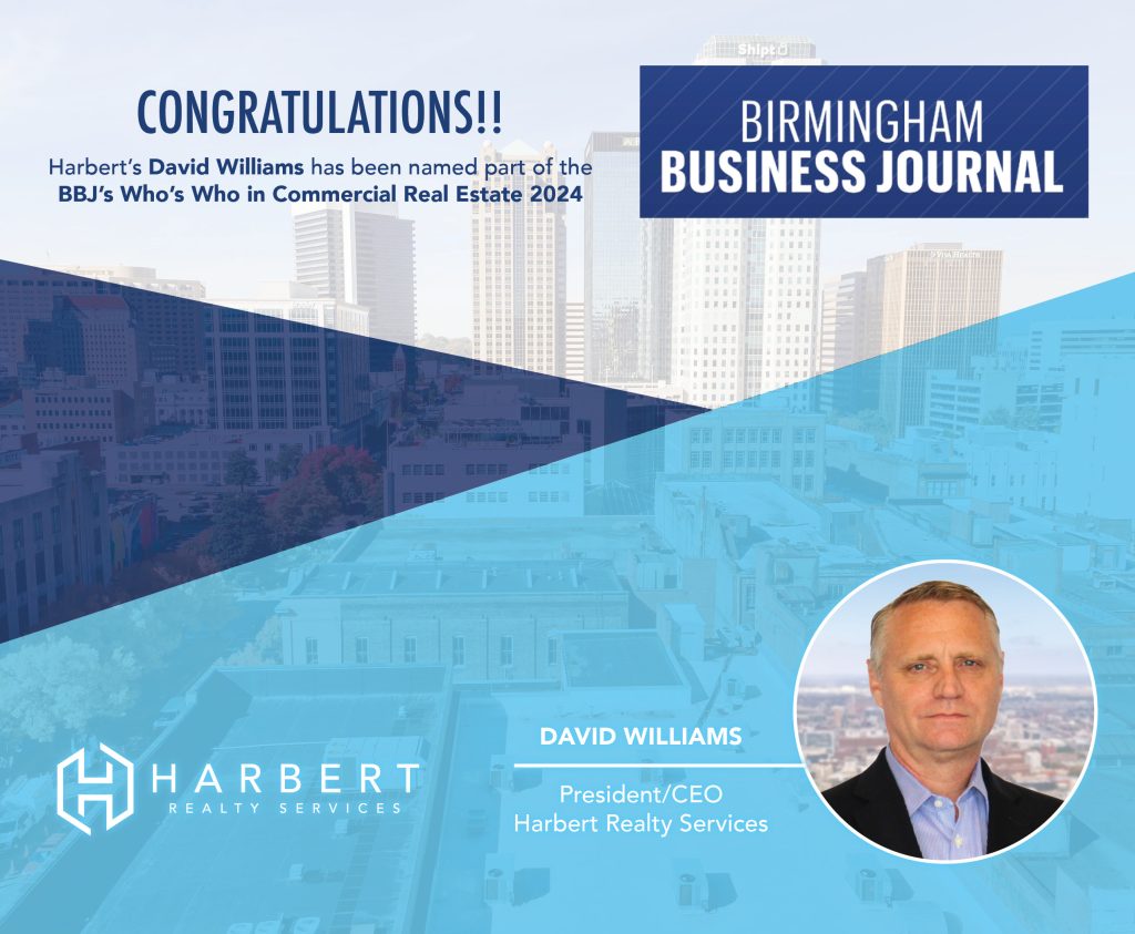 Congratulations to David Williams, President and CEO of Harbert Realty, for being named one of the Birmingham Business Journal’s 2024 “Who’s Who in Commercial Real Estate.” This list features top Birmingham professionals who are key players in the commercial real estate industry. We are extremely proud to have our team’s hard work and dedication recognized in this prestigious list!
