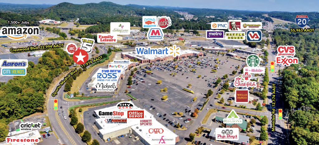 Conveniently located along high traffic corridor visible from signalized intersection with counts of 34,973 AADT. Nearby Amazon Distribution Center (+1,500 Jobs) and VA Clinic (aiding 25K+ veterans annually)