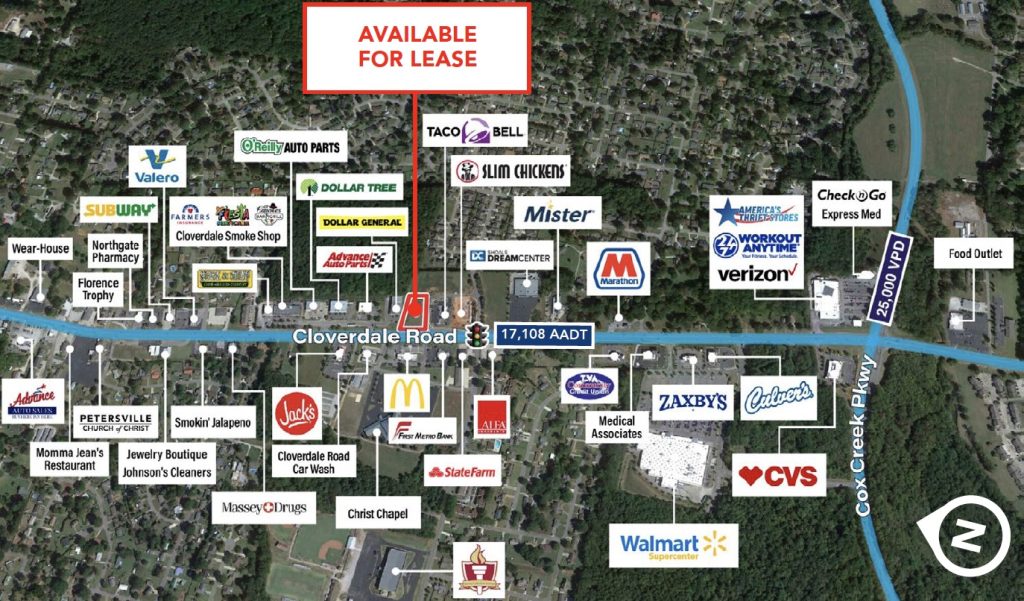 Ideally located along active retail corridor near Walmart, Taco Bell, McDonald’s, Dollar General, Zaxby’s, Culvers, Jack’s and more!