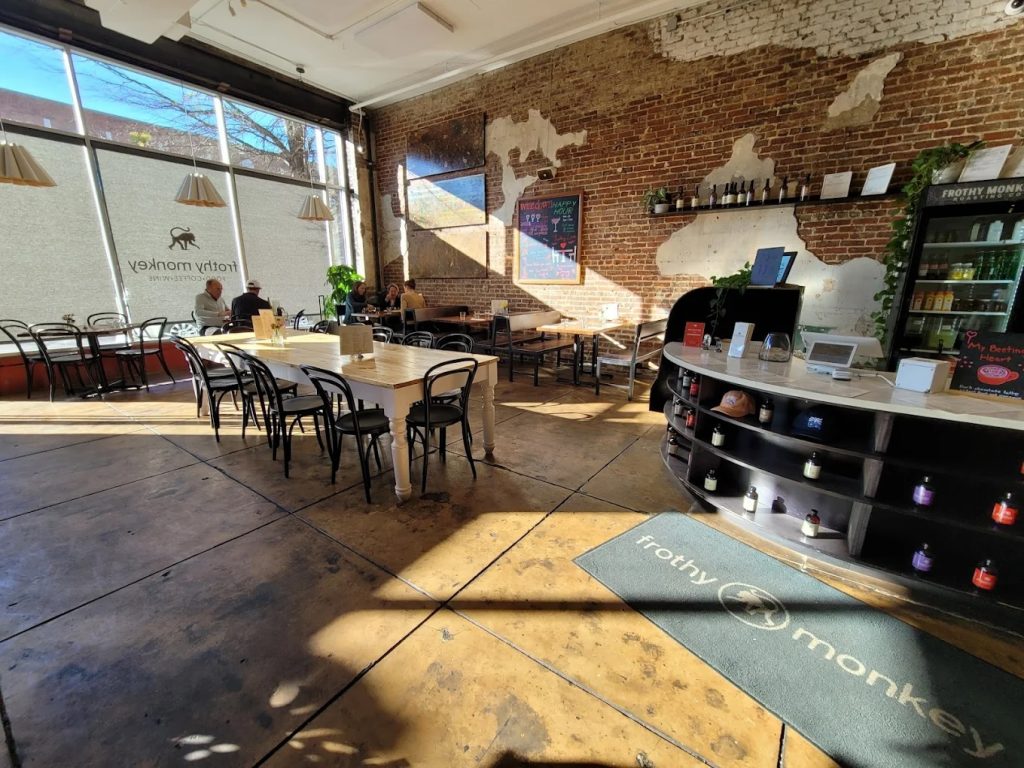 Frothy Monkey in Birmingham, AL, is a popular, all-day cafe and specialty coffee roaster known for serving breakfast through dinner with a focus on community.